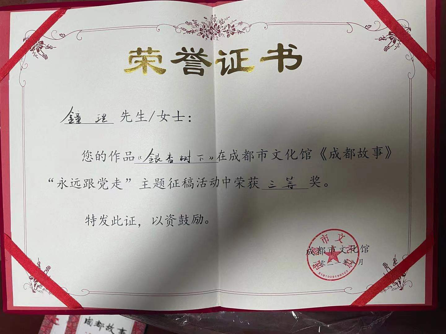 ●奖项:成都市文化馆“永远跟党走”主题征文比赛三等奖
