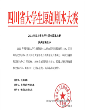 喜报|电影学院在2022年四川省原创剧本大赛荣获佳绩