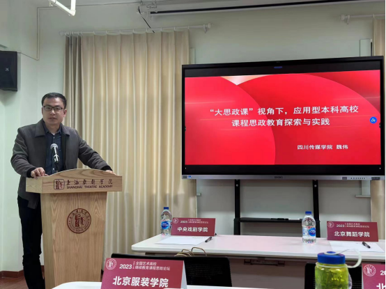 应上海戏剧学院邀请,电影学院教学院长魏伟教授代表四川传媒学院参加于上海戏剧学院主办的2023年全国艺术高校继续教育课程思政论坛,此次论坛受邀院校有中央戏剧学院、中央美术学院、中国戏曲学院、北京电影学院、北京舞蹈学院、北京服装学院、中国传媒大学、上海音乐学院、浙江传媒学院、南京艺术学院、云南艺术学院、新疆艺术学院、上海大学、重庆大学、上海师范大学等二十余所国内重点艺术高校及综合大学,该活动自4月6日开始至8日闭幕,为期三天。活动日程丰富,有学术交流、参观党的“一大”纪念馆、参观课程思政重点示范项目——复兴颂《红色之窗——足迹·延安》、观摩上海大学电影学院表演系毕业大戏《大学地》等。在主题发言环节,主办方共邀请上海戏剧学院、中国戏曲学院、山东艺术学院、四川传媒学院作报告,魏伟院长代表我校作了《“大思政课”视角下,应用型本科高校课程思政教育探索与实践》的发言。此次活动对于电影学院积极响应学校“请进来、走出去”的学术科研理念有重要意义。