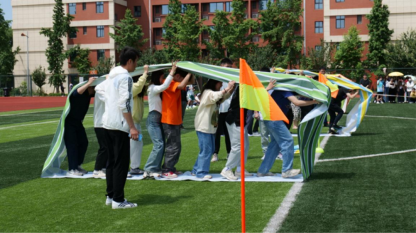 在这个游戏中,大家每步都走的小心翼翼,统一喊着前进的口号,在同学们的默契合作下,最终我院的参赛选手取得了第一名的好成绩。