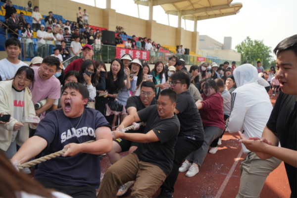 团队共配合,师生齐努力,一阵阵的呐喊声化作了无穷的动力灌注到运动员的身体里、手臂中、脚步下。在一声声的呐喊和鼓励中,电影学院在拔河比赛中取得了第三名的好成绩。