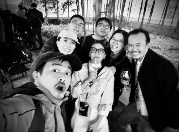(我院陈琦老师与大会执行长杜海滨教授、执行团队、获奖导演在酒会上交流)