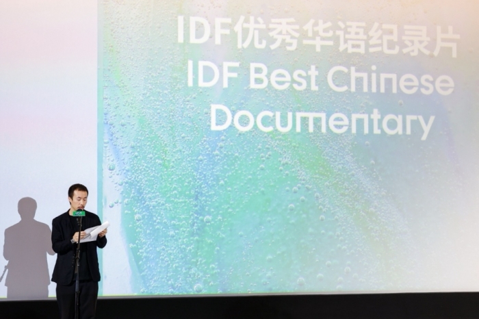 (评审委员会成员、导演、编剧、制作人李睿珺为“西湖荣誉”“IDF优秀华语纪录片”获奖作品颁奖)