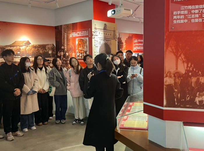 纪念馆内,师生们在讲解员的带领下,参观了江竹筠烈士纪念展厅、川大英烈展厅和江竹筠烈士宿舍展厅。通过珍贵的照片、实物档案和影像资料,大家深入了解了江姐在川大求学期间的经历,以及她为革命事业毅然前行、面对敌人酷刑却忠贞不屈的历程。