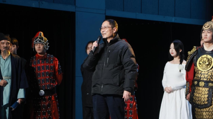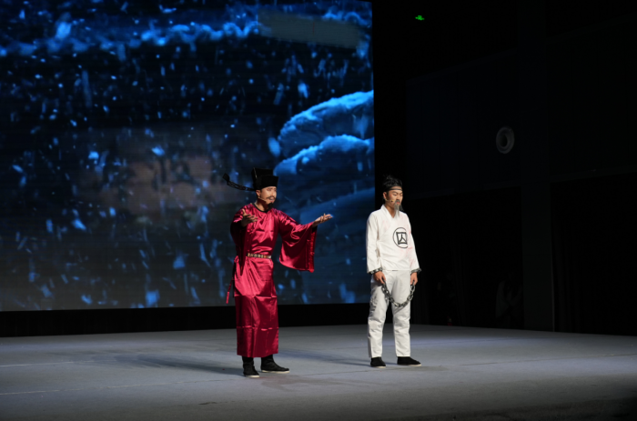 第四篇章以岳飞的故事震撼人心。岳飞在岳母刺字场景中,目光坚定,誓言“精忠报国”。战场上,岳家军操练枪法,气势恢宏,高呼“驱逐贼寇,光复河山”,展现出英勇无畏的战斗精神。而在风波亭,岳飞面对秦桧的诬陷,正气凛然,《满江红》朗诵声响彻全场,彰显其光明磊落、无愧于心的爱国情怀与英雄气概。