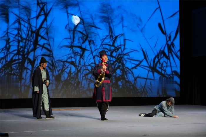 第一篇章讲述汨罗江畔的屈原,屈原深情吟诵“长太息以掩涕兮,哀民生之多艰”,生动地展现出屈原忧国忧民却遭奸佞陷害的悲愤。在与夫子的精彩对答中,深刻传达出他坚守爱国信念、不随波逐流的高尚情操,配合歌曲演唱,让观众沉浸于那个风云变幻的时代,感受屈原深沉的爱国情怀。