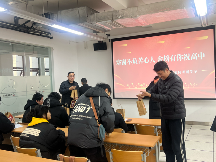 随后,老师们为每位考研学子准备了精美的小礼品。这些慰问品不仅体现了学院对学子们的关心与爱护,更寄托了学院对学子们的美好祝愿。