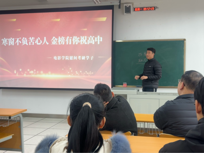 为激励即将踏上考研征程的学子们,12月15日上午9:30,电影学院在西区A9-511精心策划了一场考研慰问活动,旨在为电影学院2025届考研学子送上温暖与鼓励,帮助他们以更加坚定的心态迎接即将到来的挑战。