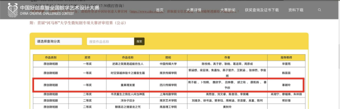 我校电影学院,以周子越为主创的同学们认真对待比赛,青年教师辜颖玲指导学生团队,结合教学方案进行实践创作。团队成员各司其职,从剧本创作到执行拍摄、再到后期剪辑,大家配合默契,仔细阅读参赛要求,细心琢磨把文字变成影像。获奖影片聚焦小人物来展现大情感,故事题材温情动人。在创作过程中遇到问题,积极与老师进行沟通寻求帮助,也在老师的指导之下,成片的质量得到提升。