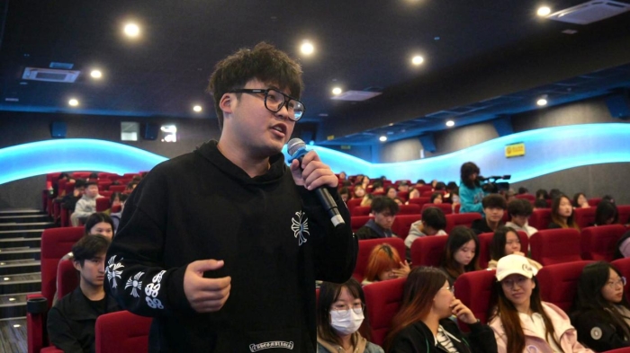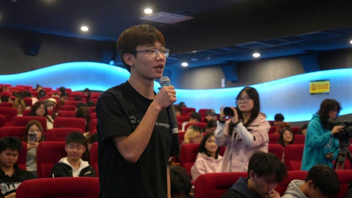 在随后的师生提问环节中,同学们踊跃发言,围绕电影创作中的观众情感代入方法、导演创作理念的探讨、“真实题材”在当下影视创作中的价值等话题积极提问。张杨导演耐心细致地回答每一个问题,以坦诚的交流和丰富的经验为同学们带来了极具启发性的思考。