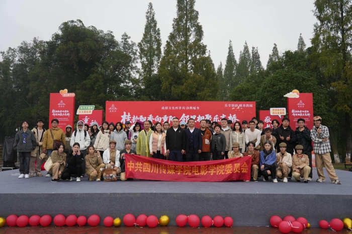 为传承中华敬老传统、深化劳动教育实践。2025年10月28日,中共四川传媒学院电影学院委员副书记姚沅伯、支部书记郭婧两位老师带队,组织志愿者与演职人员赴绣里・蜀绣融合创新产业园区,参与“桂韵飘香向重阳,邻里相聚乐高桥”2025 年郫都安靖街道高桥村重阳节时光音乐会,以校地联动搭建实践平台,助力青年成长与乡村文化建设。
