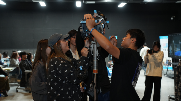 活动伊始,南光集团代表围绕品牌理念与灯具技术展开分享,通过生动讲解与宣传展示,带领在场师生深入了解南光在影视灯光领域的技术优势,让大家直观感受到现代灯光技术对影视创作的赋能作用。在随后的交流问答环节中,同学们踊跃提问,从“灯具的区别”到“不同场景下灯具的选择”,话题覆盖面专业且深入。南光集团经理逐一细致解答,并为参与互动的同学送上定制南光周边,现场学习氛围浓烈。