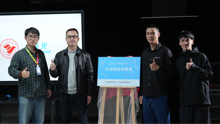 在全场师生的见证下,联合灯光实验室揭牌仪式正式举行,南光集团代表张鑫宝、林樾与魏伟院长共同为“联合灯光实验室”揭牌,双方领导携手合影,定格下校企合作的重要时刻。联合灯光实验室的落地,不仅将为四川传媒学院电影学院提供专业的灯光教学设备支持,也将实现校企资源的双向共享,助推产教协同育人的可持续发展。