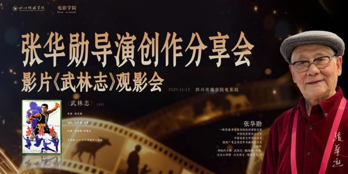 为进一步推动学院影视人才培养与艺术实践深度融合,拓展师生艺术视野,11月14日下午,四川传媒学院电影学院在东校区电影院举办“张华勋导演创作分享会暨影片《武林志》观影会”活动。国家一级导演、第四代导演代表人物之一、享受国务院特殊津贴专家——张华勋导演莅临现场。四川传媒学院理事长张书玉教授,校长助理唐杰教授,电影学院院长魏伟教授,保卫处黄华处长,电影学院副院长程伟副教授等校院领导出席本次活动,电影学院师生百余人现场观摩影片并与张华勋导演交流。本次活动由电影学院戏剧影视导演专业副主任杜承烨主持。