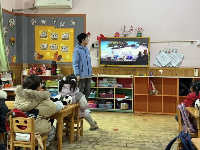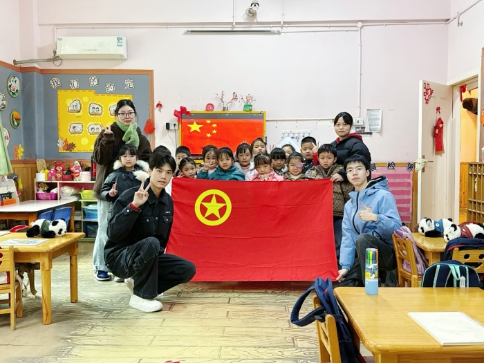 2025年12月24日,“星星之火 可以燎原”志愿服务队,走进四川省成都市郫都区安靖街道新苗幼儿园,为同学们带来了一场爱国主义教育志愿服务活动,让省级专项行动的温暖与正能量浸润幼儿心田。参与本次活动的有电影学院丛炜宸、彭文杰两名志愿者。