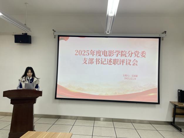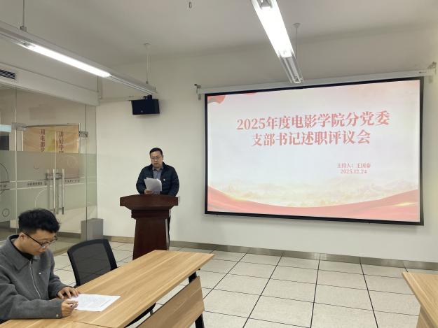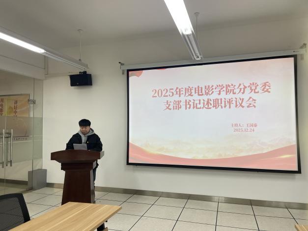 为深入学习贯彻习近平新时代中国特色社会主义思想,全面贯彻落实习近平总书记关于党的建设的重要思想、关于党的自我革命的重要思想及对四川工作系列重要指示精神,切实加强党对教育工作的全面领导,压紧压实党支部书记抓党建第一责任人职责,电影学院分党委于2025年12月24日18时召开党支部书记述职评议会议。分党委委员及各党支部委员出席会议,会议由分党委书记王国泰同志主持。