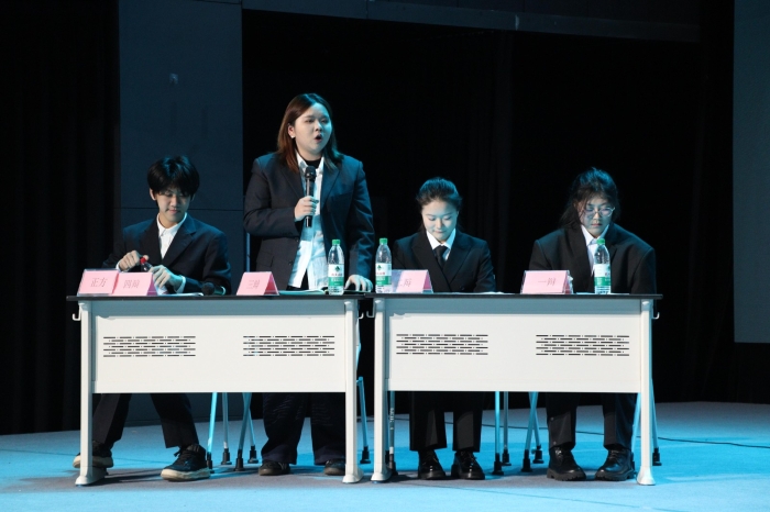 本场辩论赛的两支队伍分别为:正方—电影学院代表队,所持辩题是“资助育人,物质帮扶比精神引导更重要”;反方—音乐系代表队,所持辩题为“资助育人,精神引导比物质帮扶更重要”。赛事依次开展开篇立论、双方攻辩、攻辩小结、自由辩论、总结陈词等完整环节。双方辩手思路缜密、言辞恳切、思辨有力,自由辩论环节交锋激烈、妙语连连、精彩纷呈,不断点燃现场氛围,将赛事热度持续推向高潮,也让现场师生对资助育人的深刻内涵有了更全面、更深入的思考。